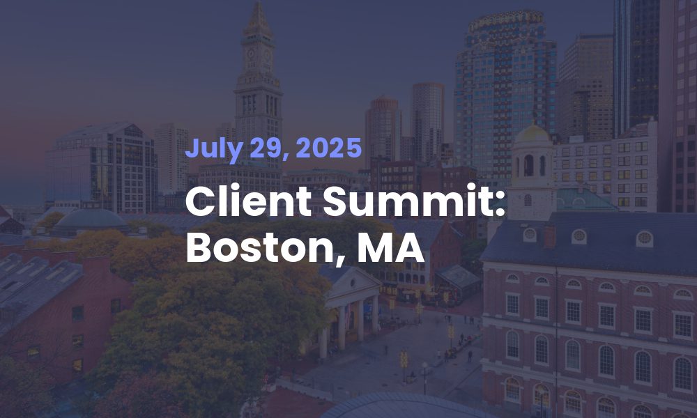 Client Summit: Boston Join us for an exclusive, customer-only event designed to fuel connection, innovation, and growth! + Add to Google Calendar + iCal / Outlook export The event is finished. Date Jul 29 2025 Expired! Time 8:30 am - 12:00 pm More Info Read More Location Boston, MA